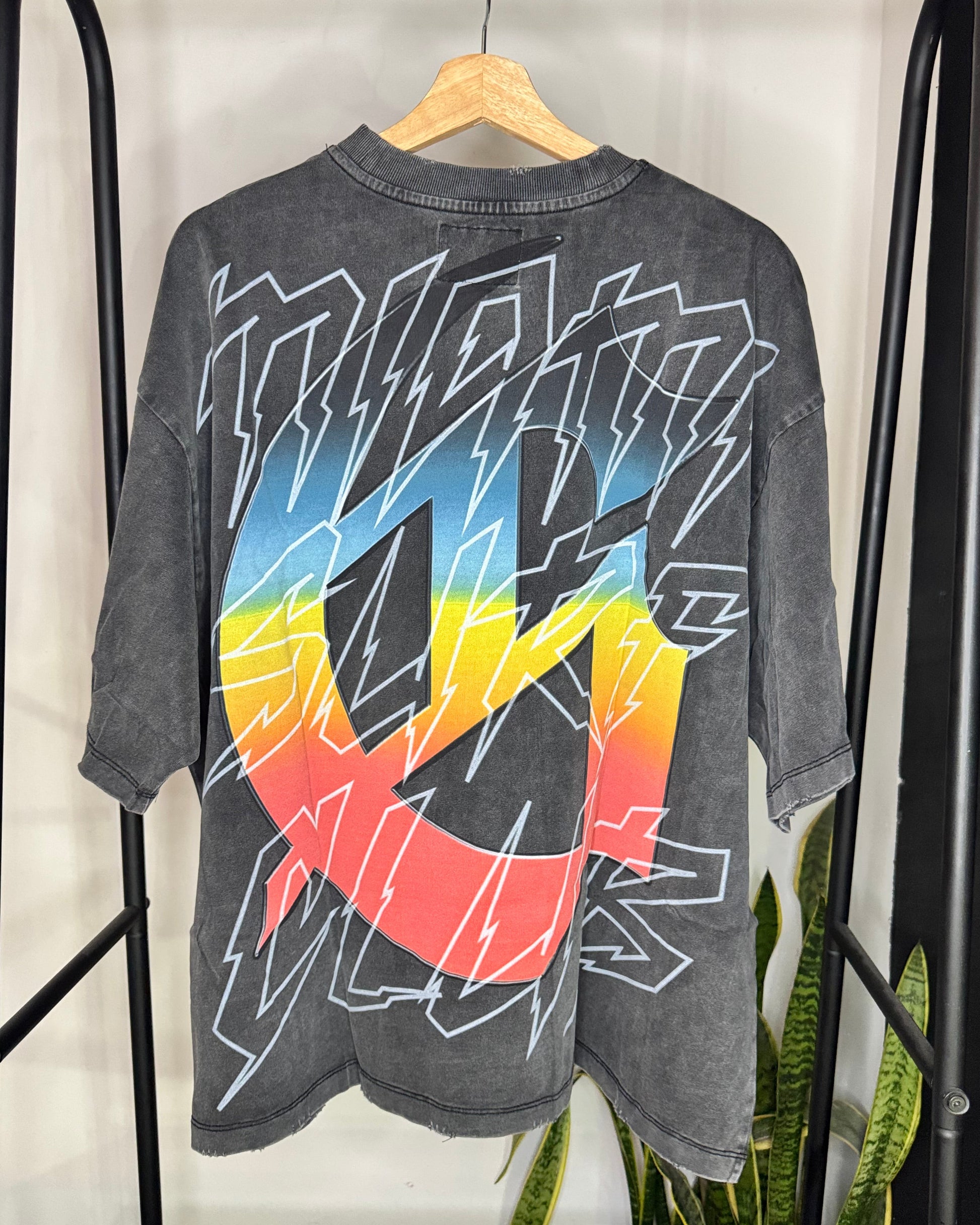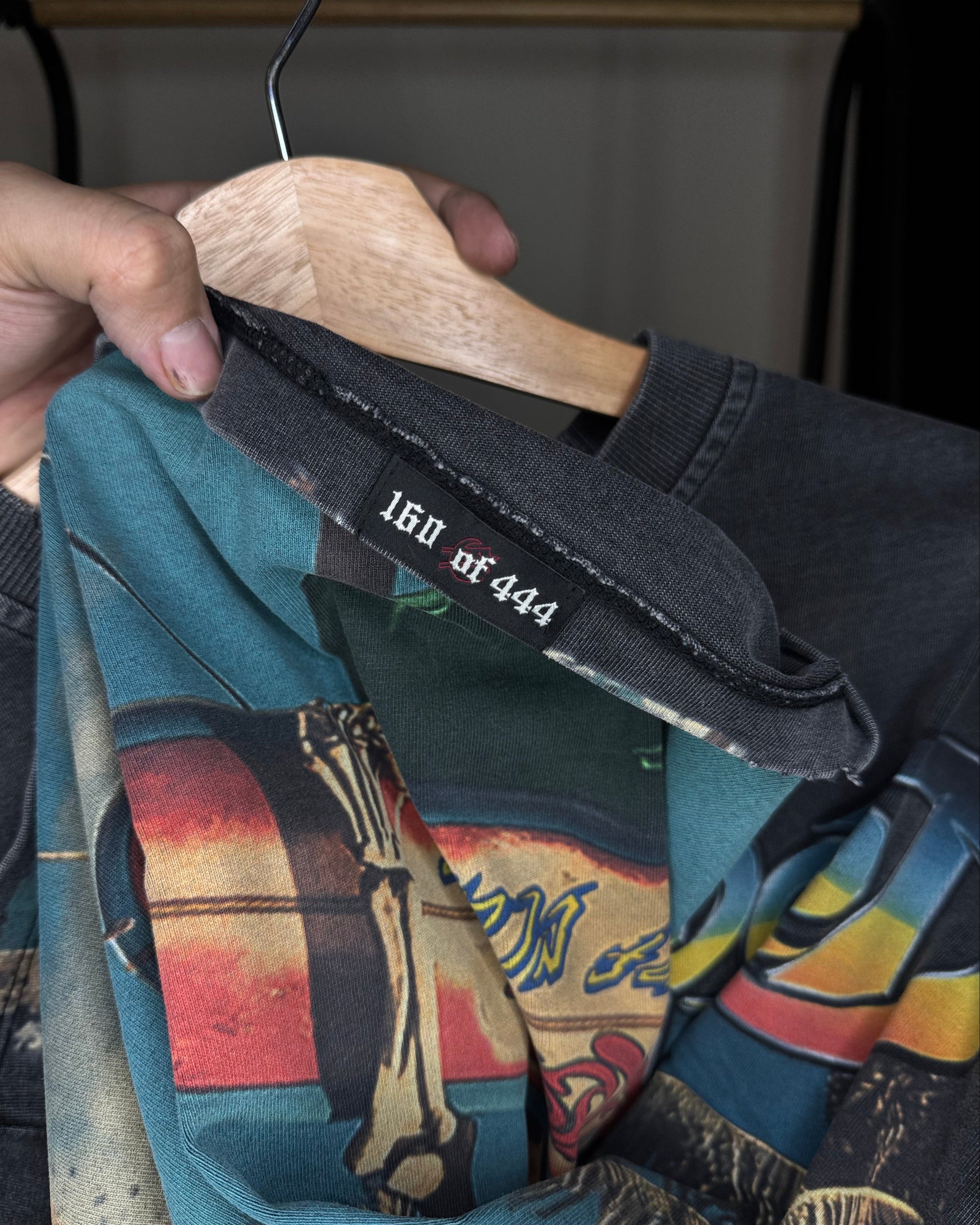 This T-Shirt is crafted from 10oz mid-weight washed fabric and features a striking art piece topped off with stones around the crown.